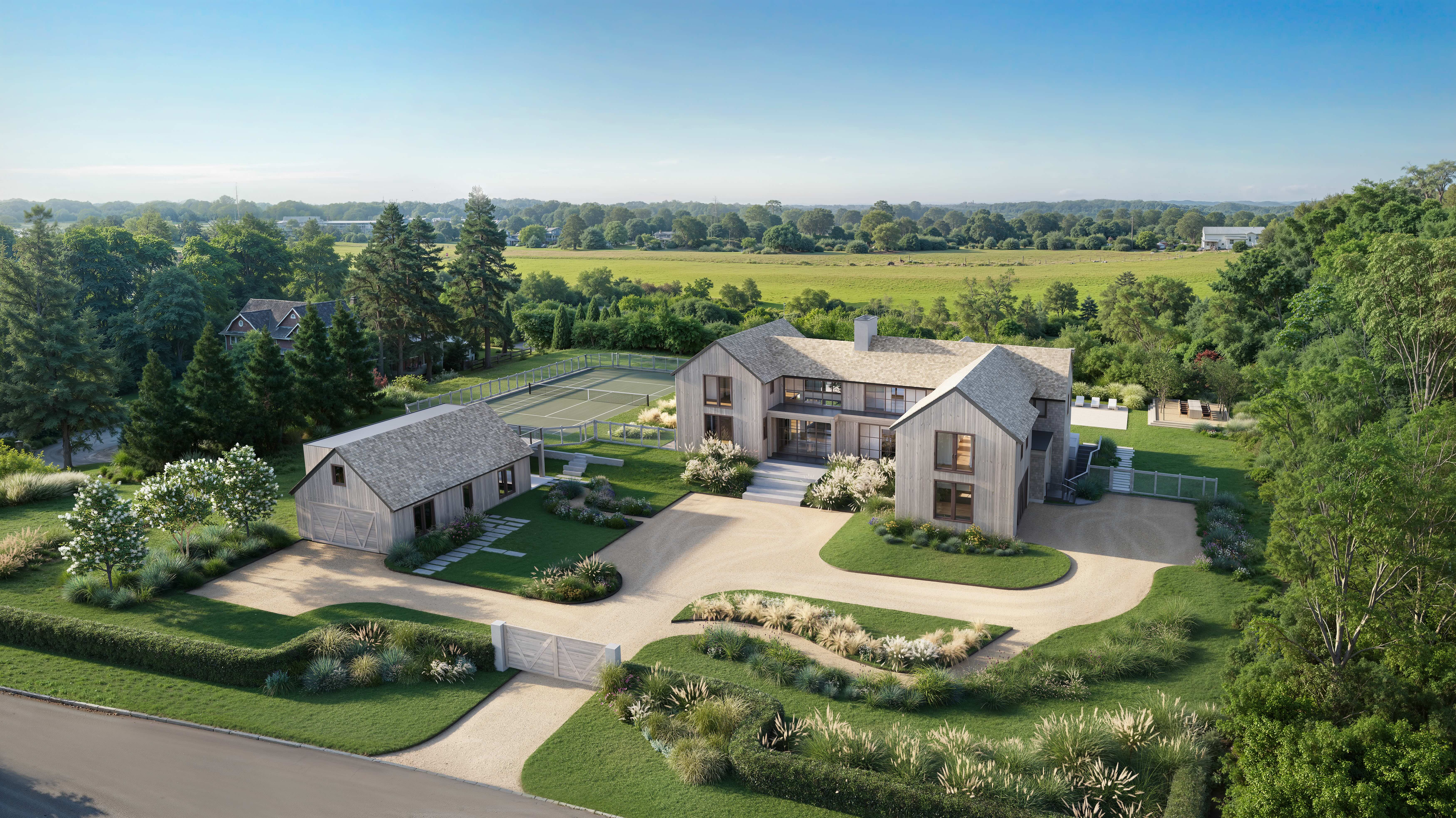 A unique opportunity to live in Bridgehampton on 1.5 acres with 40 acres of west-facing farm reserve views. 372 Lumber Lane is a standout in the Kristen Farrell & Co collection of properties. Powered by the extensive design-build experience of the K&Co development team, this pre-construction opportunity is offered with development plans that include a 12,000 ± sq. ft. main house, 1,500 ± sq. ft. accessory barn with living space, pool cabana, pool, and tennis court. Main house planned features include a private primary wing with expansive views, terrace, fireplace, two closets, and an oversized bath. Features also include seven additional guest rooms with en-suite baths, for a total of eight bedrooms, 9 full and 2 half-baths. The interior highlights include three finished levels, full gym, and a two-car garage. In addition to the main house, the accessory barn offers living space, 1 full and 1 half-bath, and a two-car garage. The outdoor living includes pool, cabana, and tennis court, with landscape design by The Laurel Group. There is over 14,000± sq. ft. of conditioned living space across all three structures on the property. Conveniently located near Bridgehampton village, wineries, stables, and beaches, this is a rare chance to build with open farm reserve views and a full amenity package. Design book and finish samples available. Call for pricing.